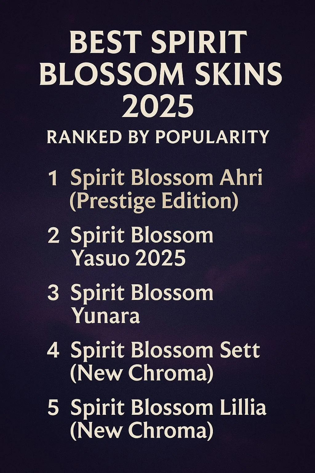 Best Spirit Blossom Skins 2025: Ranked by Popularity